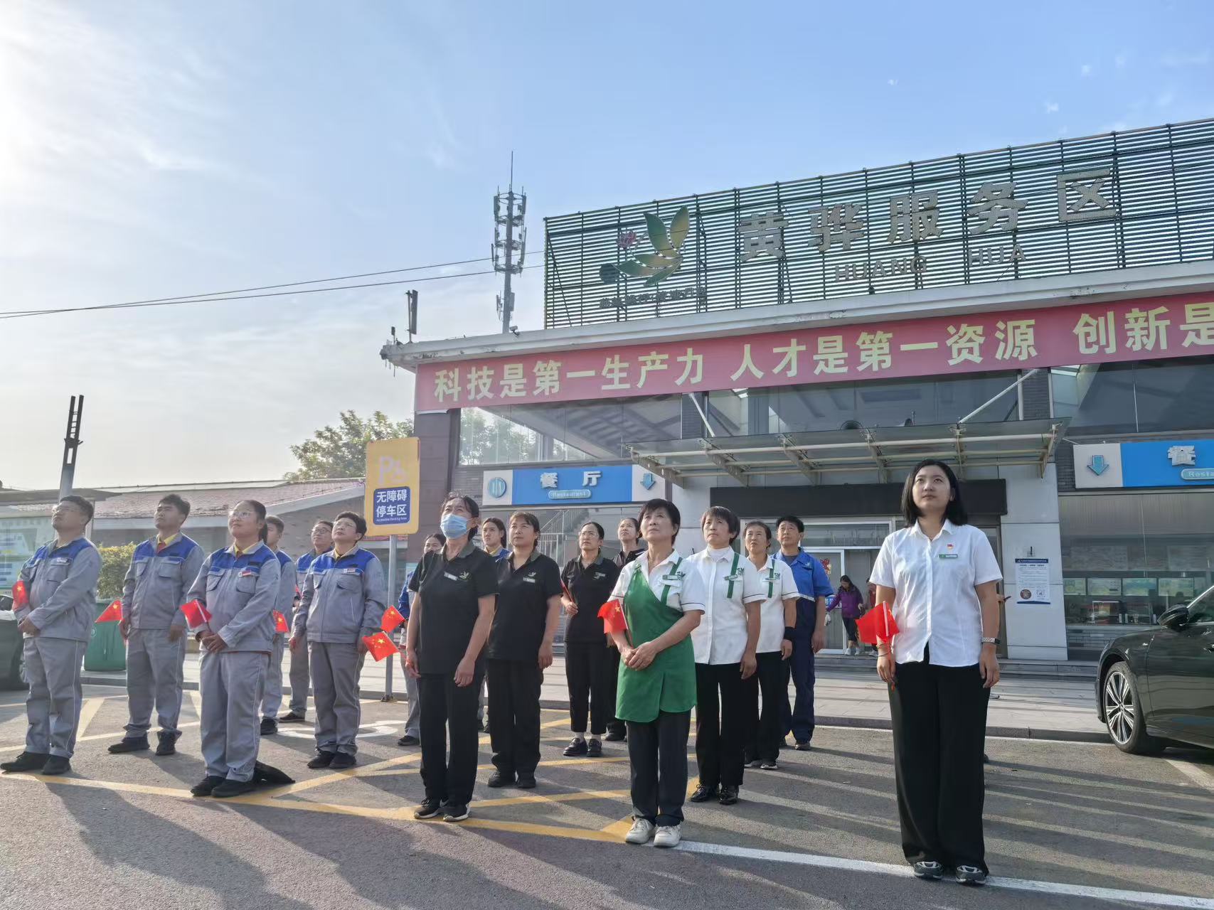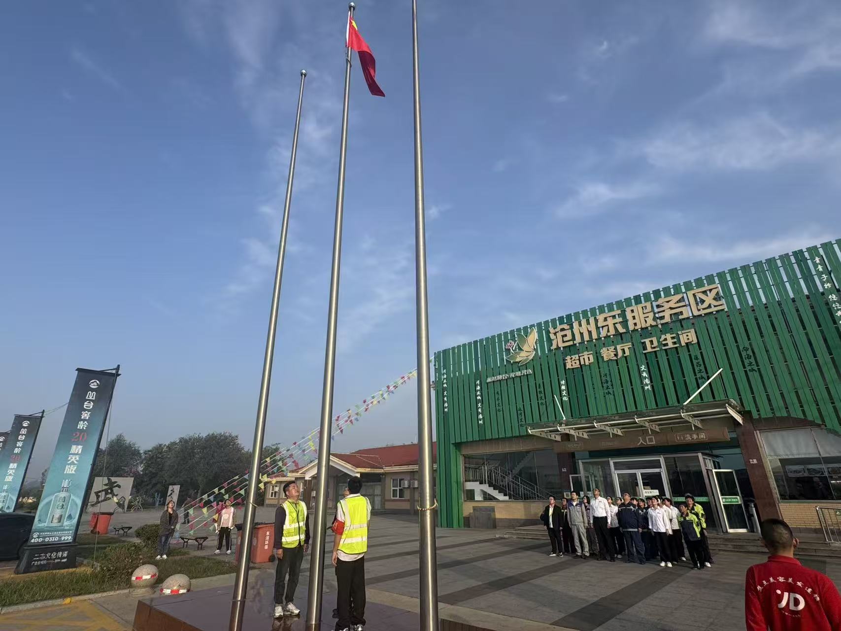 为庆祝中华人民共和国成立76周年,10月1日清晨,燕赵驿行集团沧州分公司所属服务区组织全体职工举行了隆重的升国旗仪式。