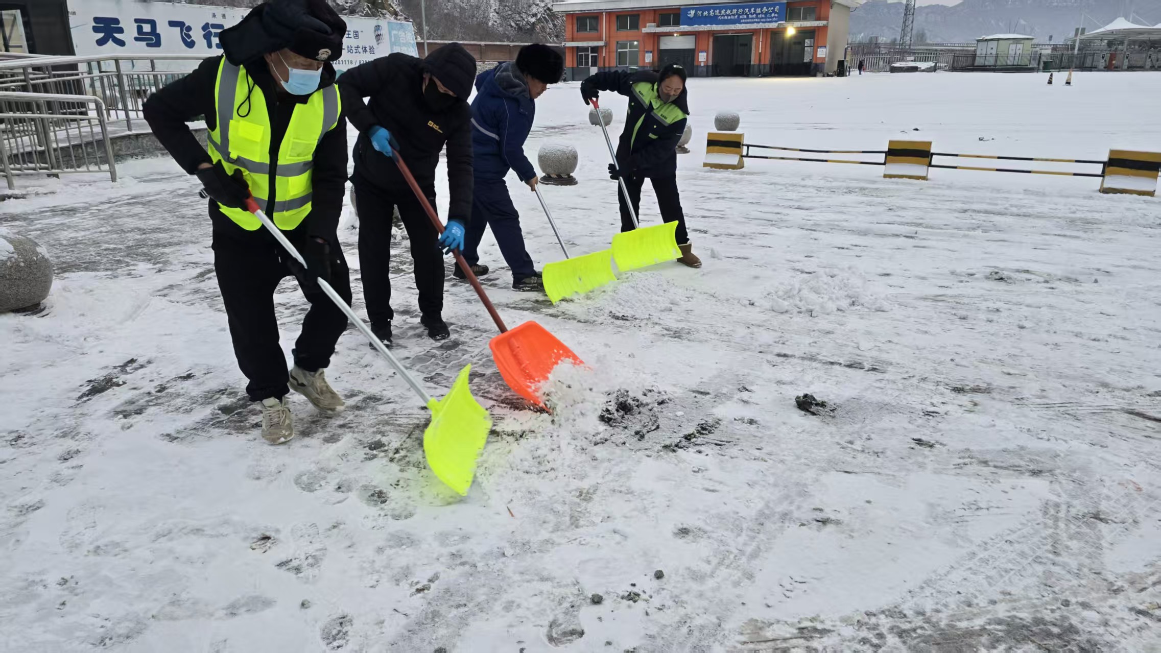 12月23日,受冷空气持续影响,承德市多地迎来明显降雪天气,面对雪情,燕赵驿行集团承德分公司所属服务区全体职工以雪为令、迅速响应,于早7点开始组织职工投入清雪一线,在全体人员的共同努力下,上午10点左右主要路段积雪已全部清扫完毕,全力保障了服务区运行有序、司乘出行安全。