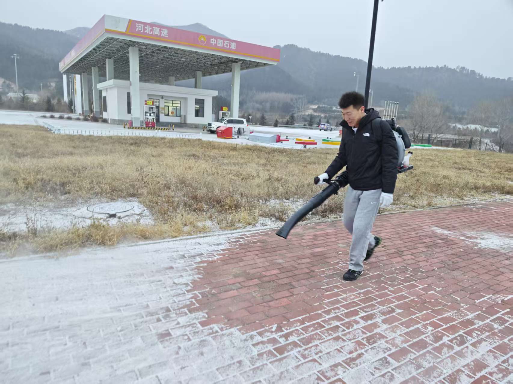 一是科学组织,高效除雪。各服务区合理调配人员与机械,采用“机械为主、人工为辅、随下随清”的方式,重点对服务区出入口、匝道、停车场等关键区域积雪进行循环清扫,并适时抛撒融雪剂,防止道路结冰,最大限度缩短积雪滞留时间,确保区内通行条件良好。二是强化提示,筑牢安全防线。在全力清雪的同时,各服务区高度重视室内外安全,在公厕、餐厅、超市等人员密集场所出入口及时铺设防滑垫、设立醒目警示标识,并安排工作人员进行引导提醒,有效预防滑倒摔伤事件,为司乘筑起一道温暖的安全屏障。三是延伸服务,传递驿路温情。各服务区将除雪保畅与暖心服务紧密结合,在做好基本保障的前提下,为过往司乘提供24小时免费热水、道路信息咨询、应急简餐供应、临时休息等延伸服务,用实实在在的行动解决群众出行难题,展现“燕赵驿行”的服务温度。四是加强值守,确保响应迅速。分公司及各服务区严格执行领导带班和24小时值班制度,时刻保持通信畅通,确保信息上传下达及时准确。全体职工坚守岗位、严阵以待,确保遇到突发事件能够第一时间发现、第一时间报告、第一时间处置,全力维护服务区平稳有序运行。