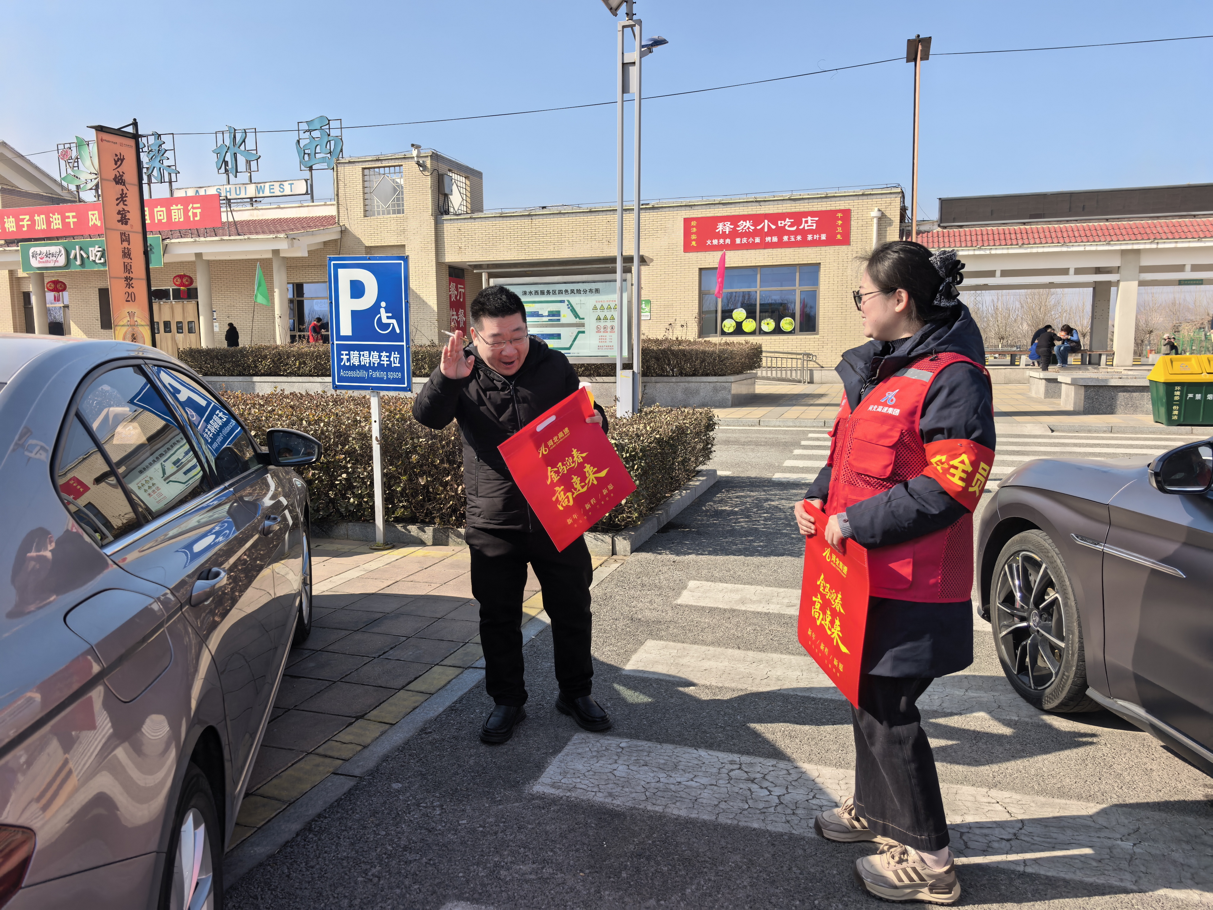 在服务现场,身着志愿者服装的工作人员们面带微笑,为过往司乘送上礼包,详细介绍礼包内容与服务区服务项目,并送上“一路平安”“新春快乐”等真挚祝福,让奔波在旅途的群众切实感受到家的温暖。