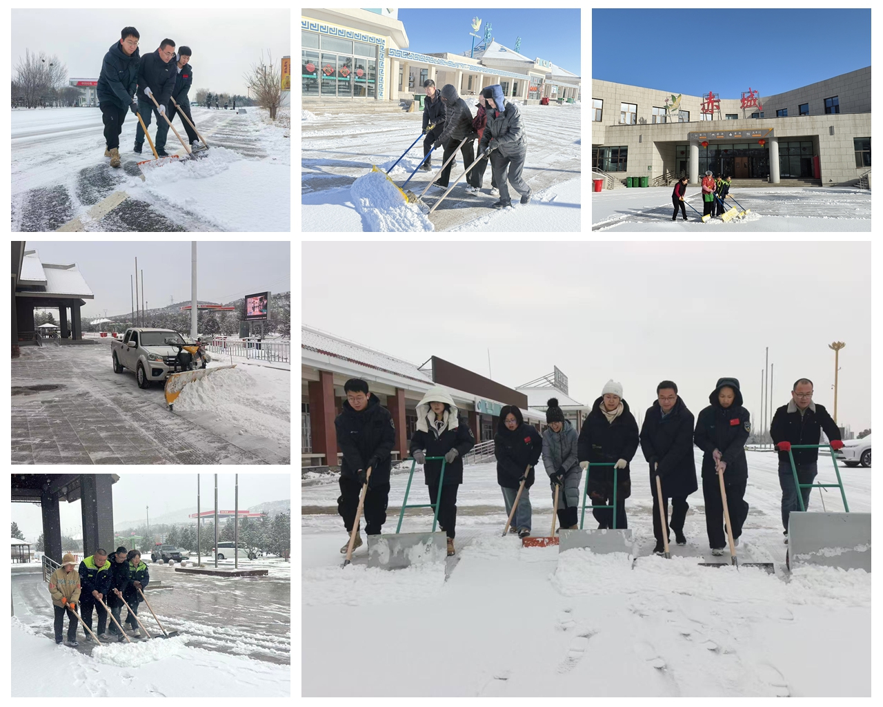 面对此次降雪,张家口分公司提前部署,密切关注天气变化。降雪伊始,各服务区第一时间进入应急状态,按照“以雪为令、随下随清”的原则,迅速组织在岗职工、调配除雪设备,对服务区出入口匝道、停车场、综合楼前及人行通道等重点区域开展不间断清雪作业。大家不畏严寒,挥舞铁锹、推雪板,配合除雪车辆,在白色雪地中开辟出一条条“平安通道”。